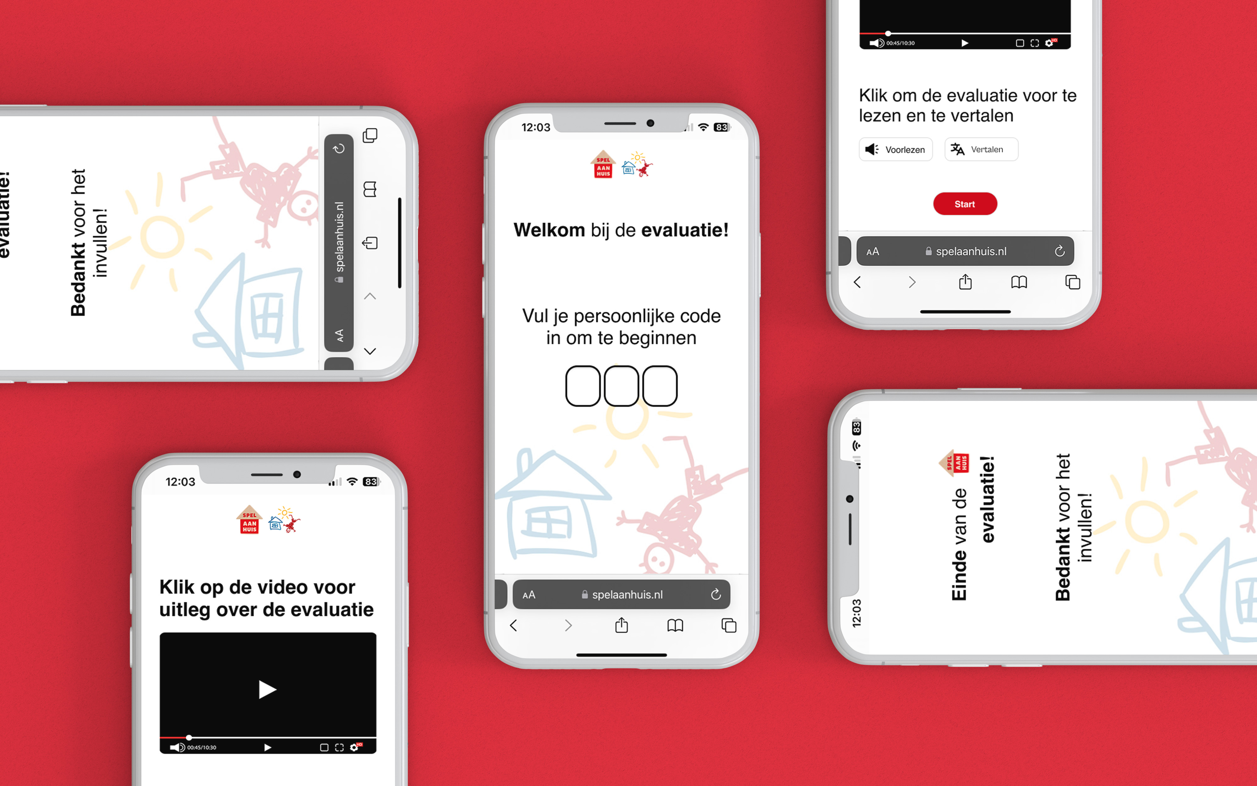 Spel aan Huis is een preventief programma dat gezinnen ondersteunt met jonge kinderen van 1,5 tot 7 jaar. Het stimuleert spelontwikkeling, maakt opvoedingsvragen bespreekbaar en verbindt ouders met voorzieningen in de wijk. In regio’s als Den Haag, Rijswijk en Delft wordt het uitgevoerd door Stichting JESS (Xtra) met begeleiding van hbo-studenten. Voor deze opdracht ontwierpen wij een digitale oplossing om het oudertevredenheidsonderzoek te vernieuwen. Het papieren proces was tijdrovend en foutgevoelig, waardoor het inzicht in resultaten beperkt bleef. Met het nieuwe online prototype kunnen ouders de evaluatie eenvoudig via hun telefoon invullen, waarna de gegevens automatisch worden verwerkt. Zo krijgen programmaleiders sneller en overzichtelijk inzicht in de resultaten.