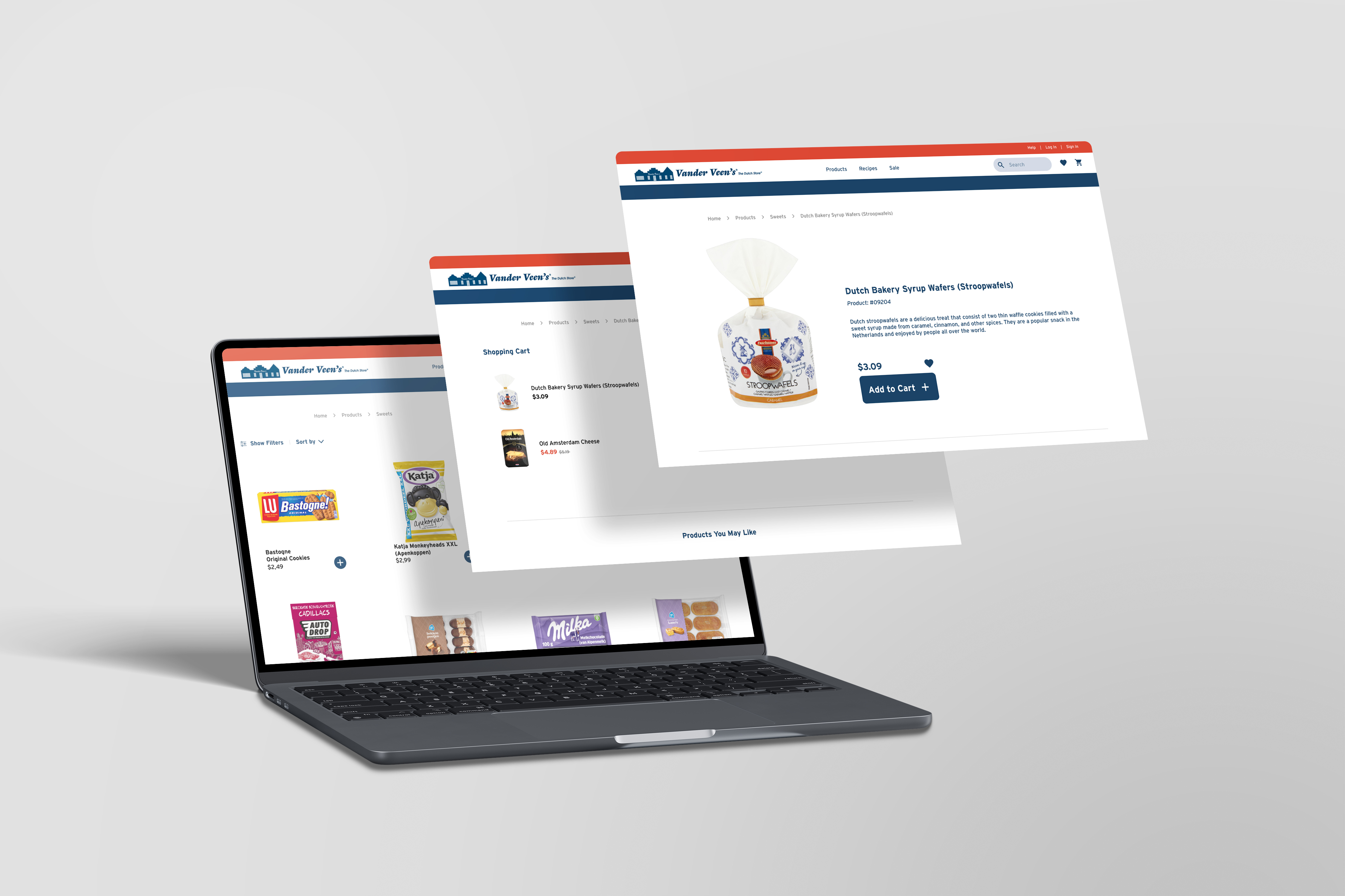 The Dutch Store is een webshop die typisch Nederlandse producten verkoopt aan klanten in het buitenland. Voor dit schoolproject gebruikten we de bestaande website als oefencasus de opdrachtgever was niet echt betrokken, maar diende als uitgangspunt voor ons redesign. De focus van dit project lag op het toepassen van design patterns om de webshop gebruiksvriendelijker en consistenter te maken. De originele site was verouderd en onoverzichtelijk, waardoor we konden experimenteren met nieuwe patronen voor navigatie, productoverzicht en interactie. Het resultaat was een vernieuwd webconcept waarin structuur, duidelijkheid en een moderne stijl centraal stonden.